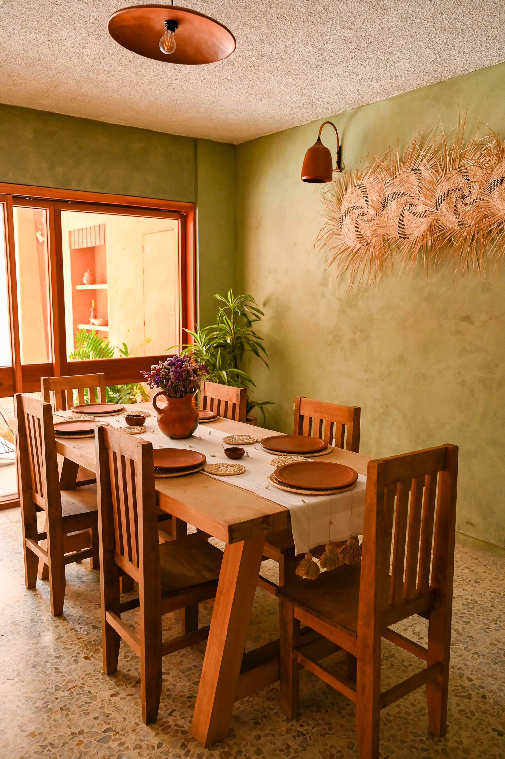 Casa Pina ha sido cuidadosamente remodelada con materiales locales como barro negro, palma, madera y pigmentos de tierra, creando un ambiente armónico y lleno de carácter.